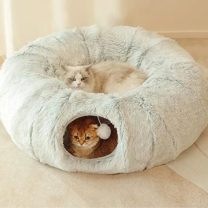 2-in-1 Foldable Cat Tunnel Bed – Plush Interactive Play & Sleep