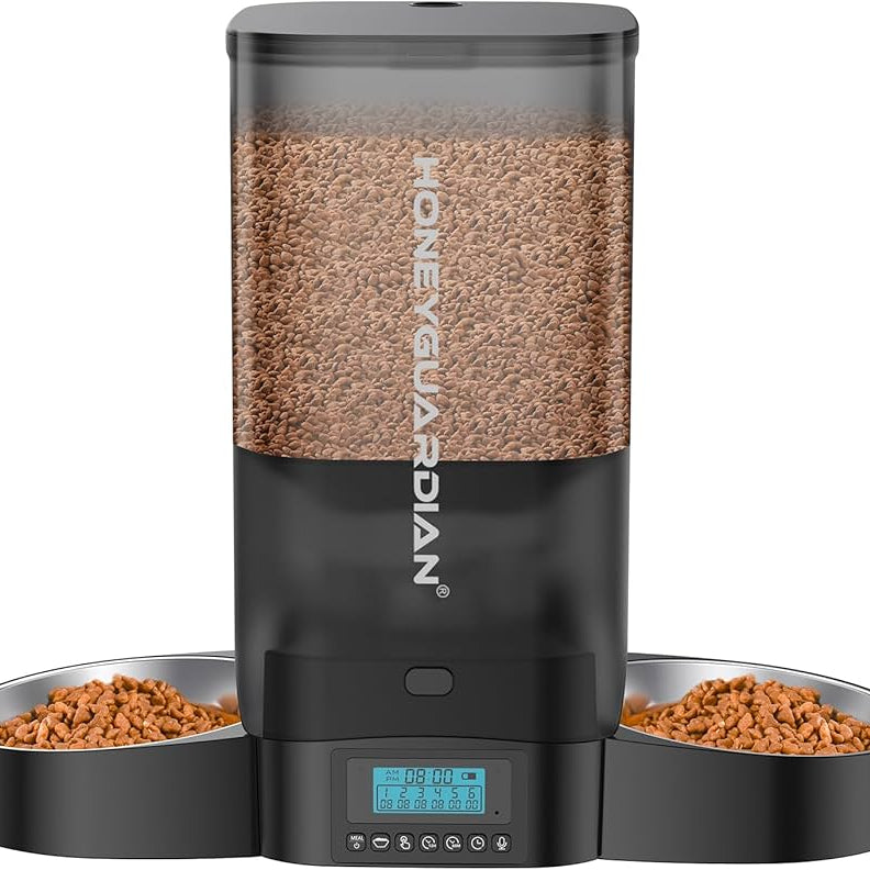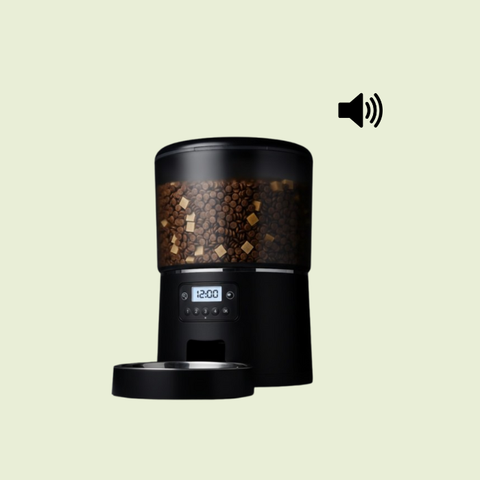 Allows you to record your voice to get your furry friends attention, and will play when it is time to eat!